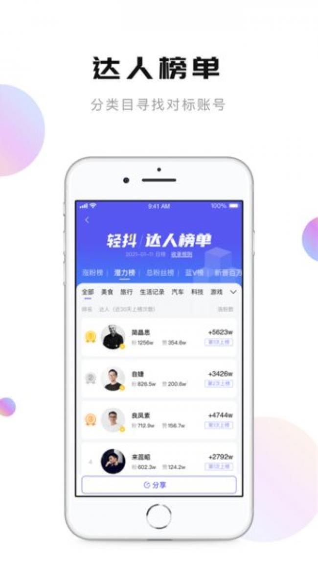 1、实时监测短视频达人数据,清晰了解每个领域的热门达人,快速查找对标账号。