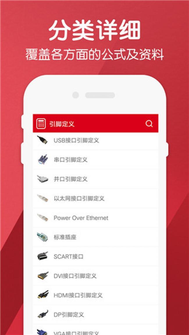1、拥有最全面的电气计算功能,主要分为电动机、转换、引脚定义、公式、资料等类型,分类非常详细,电气工作者可以根据自己的工作选择适合的计算功能。