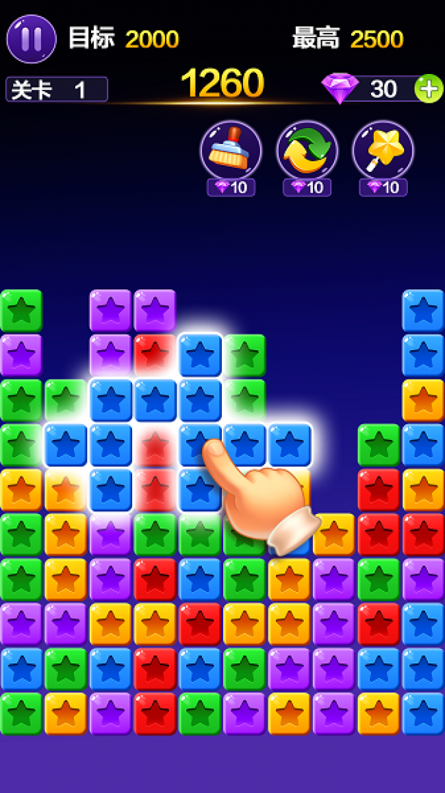1、星星趣消消游戏操作方式极其简单,只需轻触屏幕即可完成消除,交互设计让各个年龄段的玩家都能轻松上手能快速掌握核心玩法。