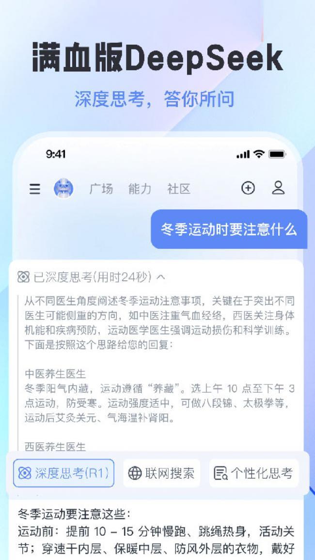 深度思考+联网搜索+高速专线,能对用户的提问进行深度思考、逻辑推理和详细回答。同时联网搜索信息,以提高推理和回答的时新性和权威性。