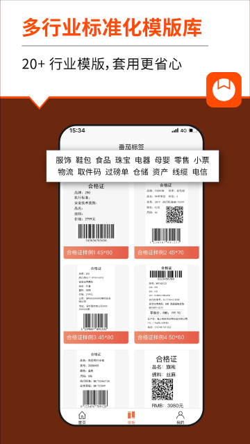 2、针对零售商超等行业,支持手机扫描商品条码,自动获取商品信息,智能填充标签模板内容,快速打印。