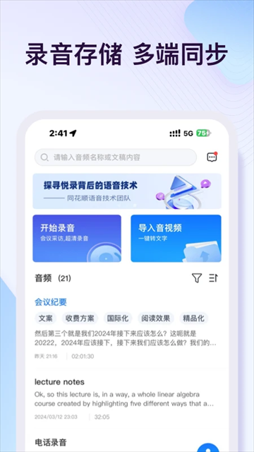 2、多人会议轻松录音,会议记录实时转写,随时随地手机灵感,语音说出立即记录。