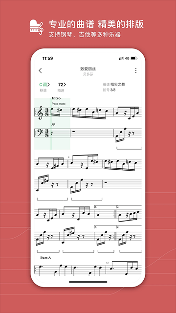 1、简化内置和弦,让初学者轻松读谱,示范音频视频助你学琴读谱。