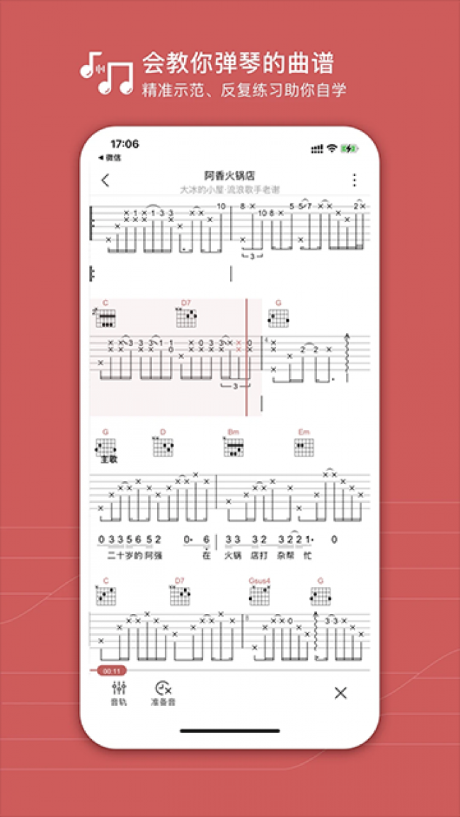 2、智能曲谱,有别于吉他社xx谱大全等网站的图片谱,从弹唱到finger指弹。