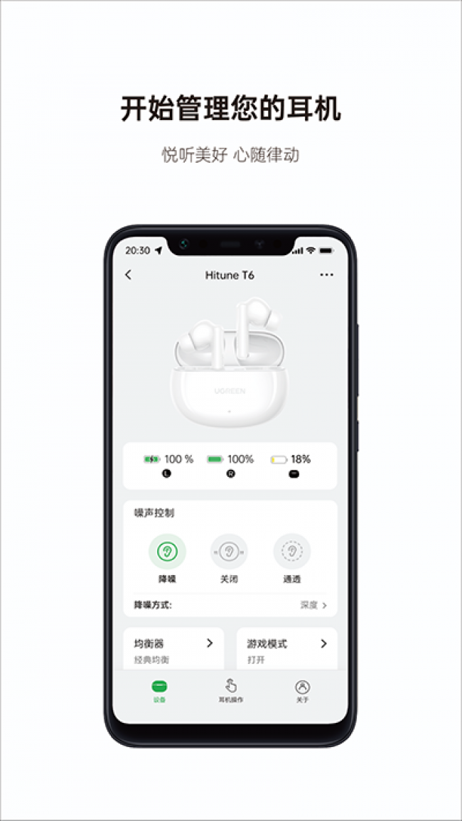 绿联耳机app下载是一款非常好用的耳机管理工具,它是专为绿联品牌的蓝牙耳机打造的控制软件,它可以为用户提供优质的管理服务,在这里你可以连接各种设备型号,在这里你可以轻松控制自己的耳机,随意调节音量或开关降噪模式,在这里你可以查看耳机的详细信息和电量等,还可以在线进行固件升级,给你更好的音质体验,非常适合喜欢听音乐的用户使用,能够满足不同用户的使用需求,界面设计简洁干净,所有功能都一目了然,深受用户喜爱,如果你也喜欢这款软件,软件站现有最新版本,那就快来下载吧。