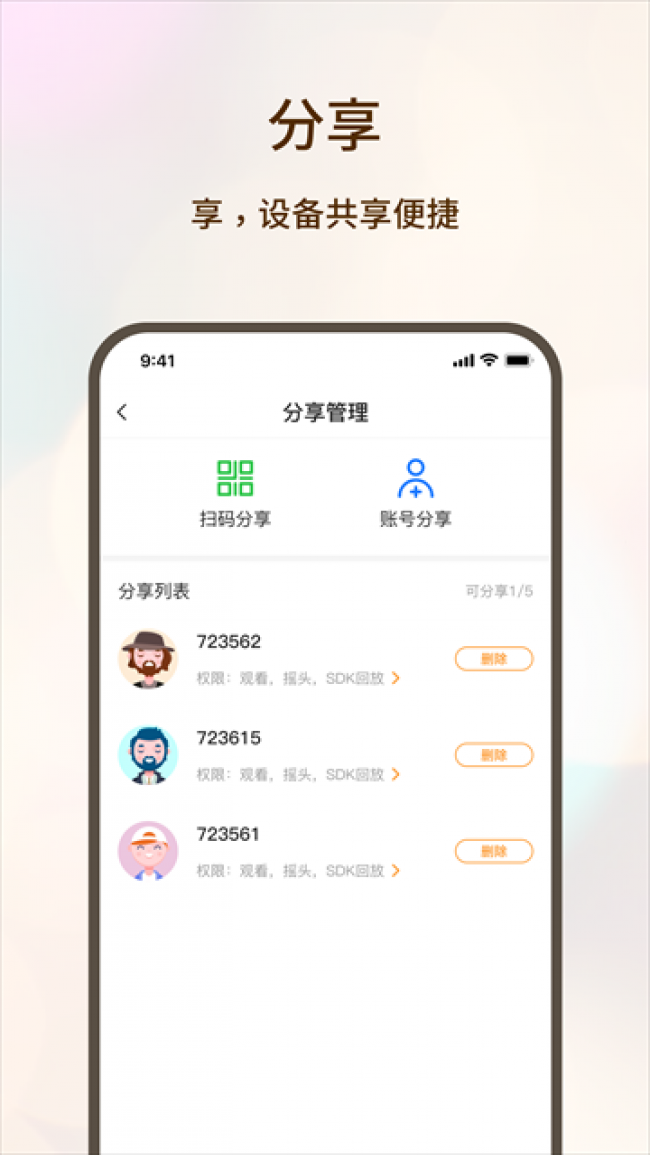 3、支持多屏查看视频,同时连接多个摄像头,支持设备分享,一台设备可以分享给多个用户。