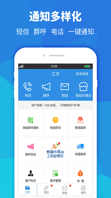 3、通知多样化:短信、群呼、电话,一键通话,多种录入号码方式:手动、语音、扫描,极速录入。