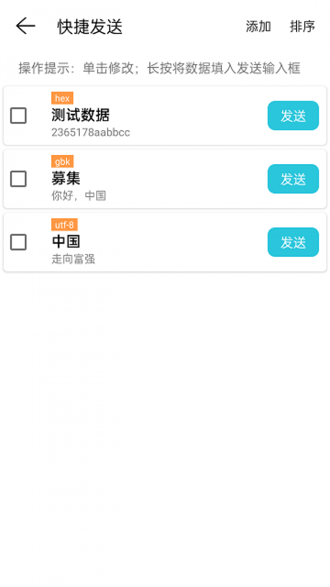 2、在接收区与发送区有两个多选框,用于发送与接收16进制的数据。