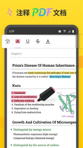 3、打开 PDF 文档,包括打开已加密的 PDF 文档,可添加高亮、下划线、波浪线、删除线来标注文档内容。