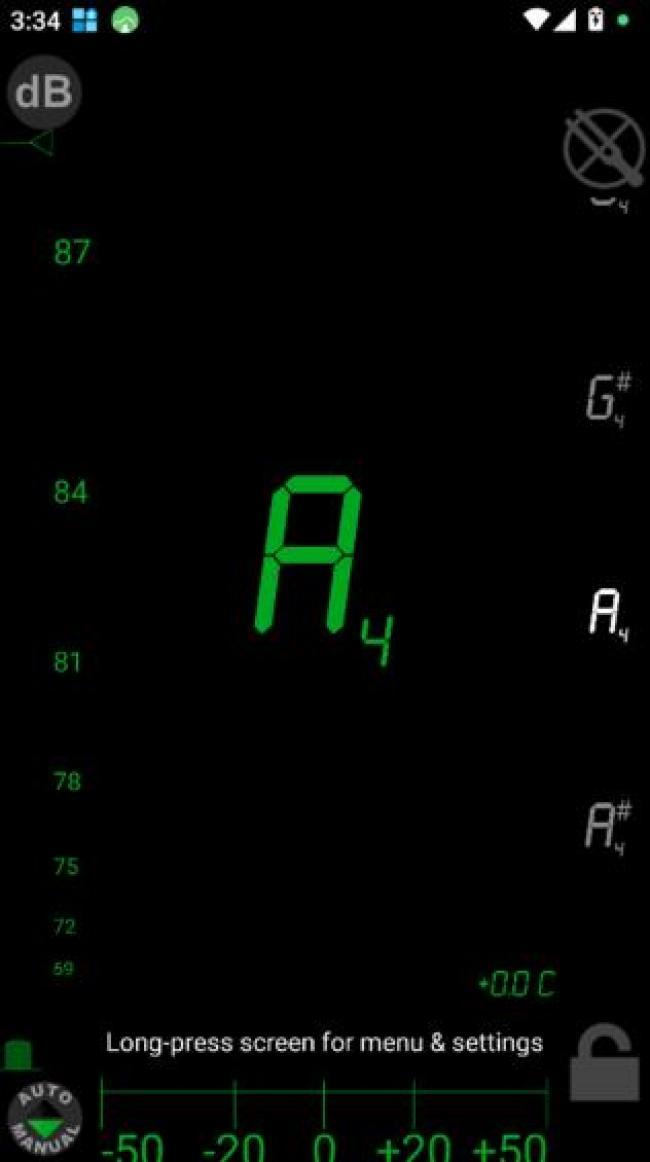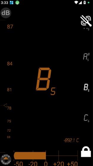 2、“屏幕锁定”功能允许用户锁定到特定的音符进行调音,方便在大幅偏离时进行调整。