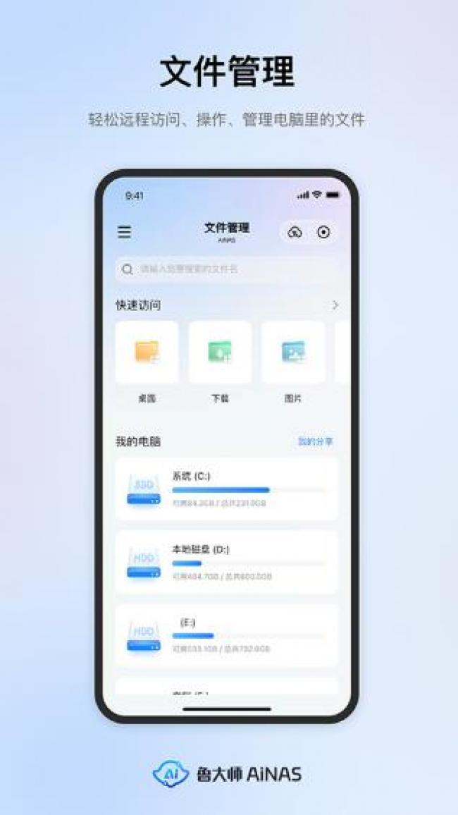 鲁大师AiNAS手机版下载是一款非常好用的服务器软件,这款软件可以配合鲁大师AINAS电脑版一起使用,可以帮助用户在手机上轻松访问电脑设备,功能非常强大,不论是文件管理、相册备份、影视中心都可以随意使用,能够满足不同用户的使用需求,不需要购买NAS硬件就可以将电脑转换为NAS终端,可以省去复杂的网络设置和硬件调试,大大降低了用户的技术门槛,小白也能快速上手,为用户提供了优质的服务,深受用户喜爱,如果你也喜欢这款软件,软件站现有最新版本,那就快来下载吧。