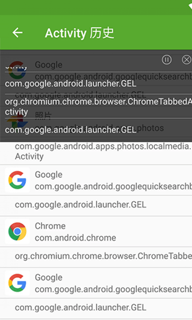 2、或者叫查看当前 Activity、栈顶 Activity 信息,可以方便的查看 Activity 包名、类名、打开时间,支持小窗模式显示。
