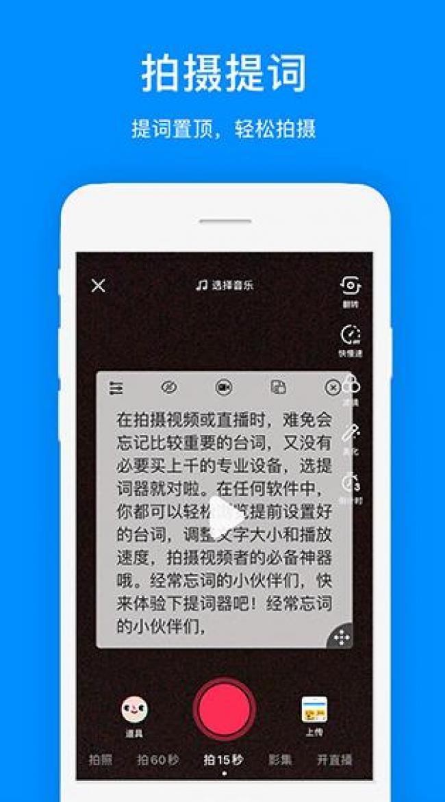 2、搭配抖音、快手、vlog等众多APP,一台手机边拍边提词。