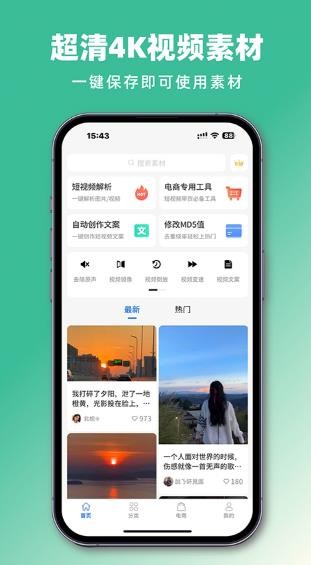 抖素材app下载是一款非常实用的视频素材软件,它可以帮助用户完成短视频创作,这里有丰富的素材可以随意使用,为你的创作提供灵感,帮你轻松创作各种优质的短视频内容,还有各种高清无水印的视频素材可以免费使用,不论是城市、风景、大海还是美食都应有尽有,可以满足不同用户的使用需求,操作简单方便,界面设计简洁干净,支持视频解析、文案创作等功能,可以为用户省去很多麻烦,大大提高工作效率,非常时候从事自媒体行业的用户,如果你也喜欢这款软件,软件站现有最新版本,那就快来下载吧。