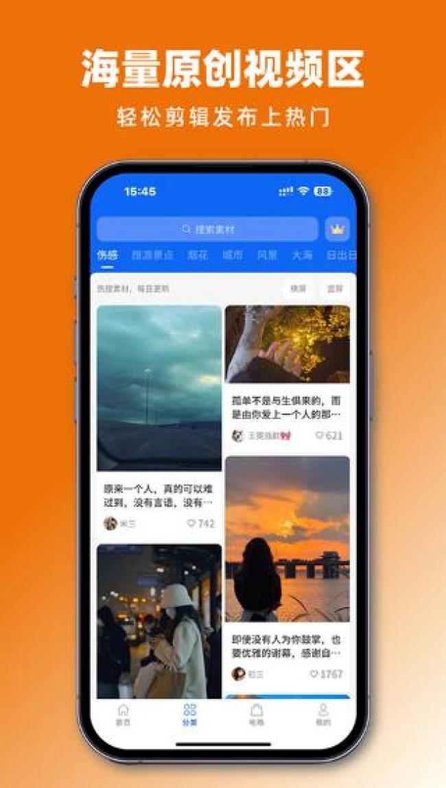 3、用户可以将个人旅行途中拍摄的原创视频进行分享,让更多用户可以使用到充满创意和创新的视频素材