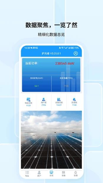 护光者app下载安装是一款功能强大的智能终端应用软件,它可以为用户提供光伏电站监控、光伏设备查看、报警、蓝牙工具、扫一扫、wifi配置、工单处理、光伏电站故障处理等功能,功能非常专业可以帮助用户解决各种问题,还可以第一时间接受客户的维修请求,帮你在最短的时间内解决问题,大大提高了用户的工作效率,非常适合电站监管人员使用,能够为你的日常工作带来更多帮助,帮你实时掌握全部电站的状况,深受用户喜爱,如果你也喜欢这款软件,软件站现有最新版本,那就快来下载吧。