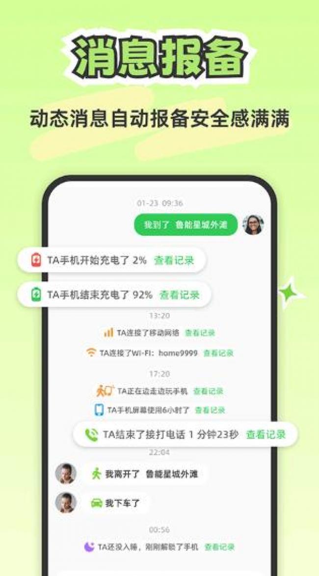 2、对方上车下车、离开或到达任意地方时,自动发送报备消息。