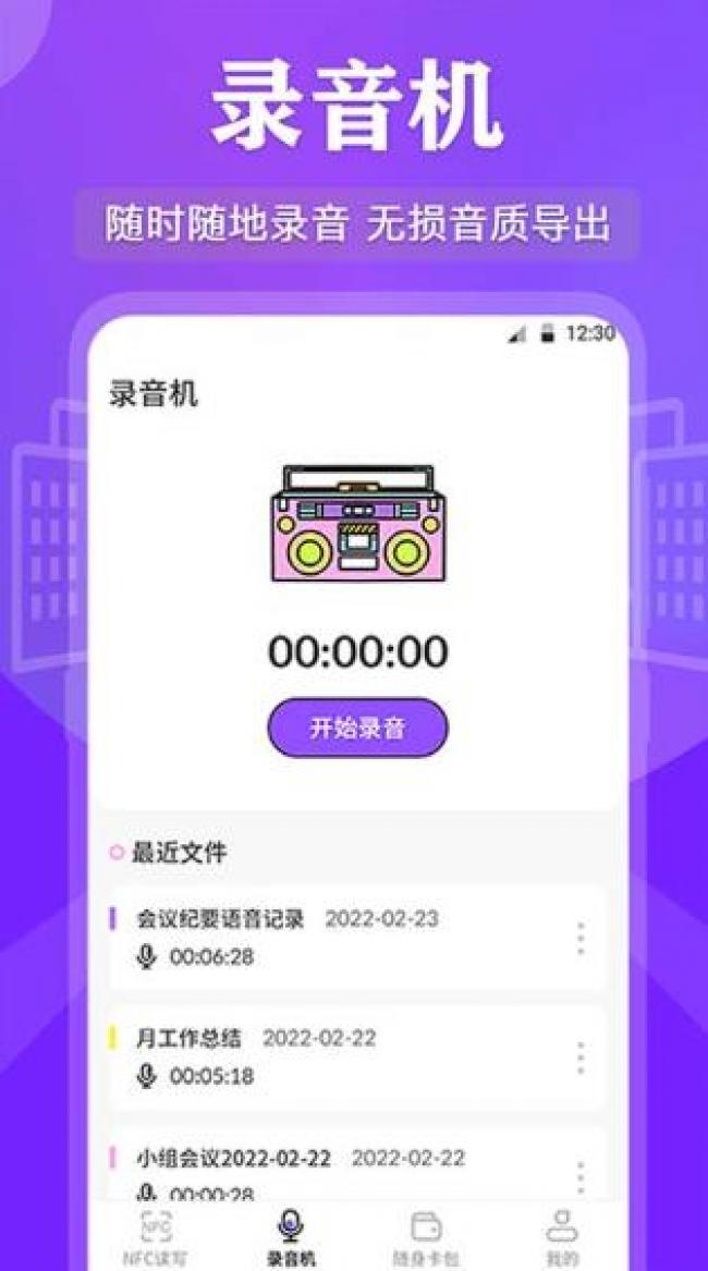 NFC读写app下载是一款功能丰富的nfc读写器软件,一般称为nfc管家app,它可以帮助用户实现读写复卡功能,这里包含了读卡、写卡、格式化、门禁卡、公交卡和银行卡等多种功能,可以满足不同用户的使用需求,还可以针对不会使用的人群设置了软件教程,软件还可以为用户提供录音机功能,帮助客户记录各种有用的事务,方便以后调用,即使出门不带钱包也不用担心,一部手机就可以解决你的各种问题,没带门禁也可以随意开门,如果你也喜欢这款软件,软件站现有最新版本,那就快来下载吧。