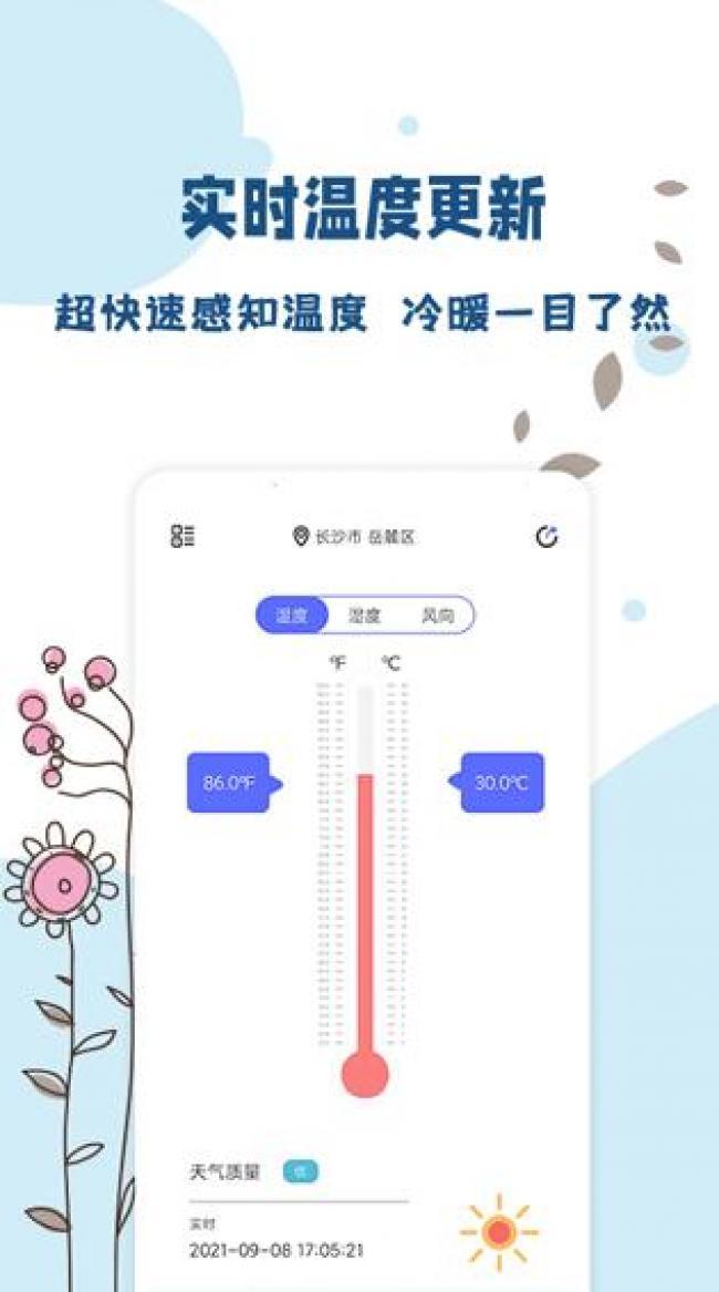 2、新增桌面小插件,随时查看温度、湿度、风向,标准温度计软件界面清新简洁。