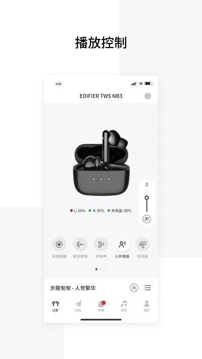 漫步者app官方下载是一款非常好用的智能设备管理软件,平台可以支持无限洗了、降噪系列和多种系列的蓝牙耳机进行连接管理,用户可以开启蓝牙权限搜索附近的智能设备,在这里你可以随时查看设备信息和状态,还可以远程控制耳机开启或关闭降噪,调节耳机音量或固态升级,功能非常全面能够满足不同用户的使用需求,用户可以随意切换不同音效,功能非常全面,满足不同用户的使用需求,操作简单方便,深受用户喜爱,如果你也喜欢这款软件,软件站现有最新版本,那就快来下载吧。