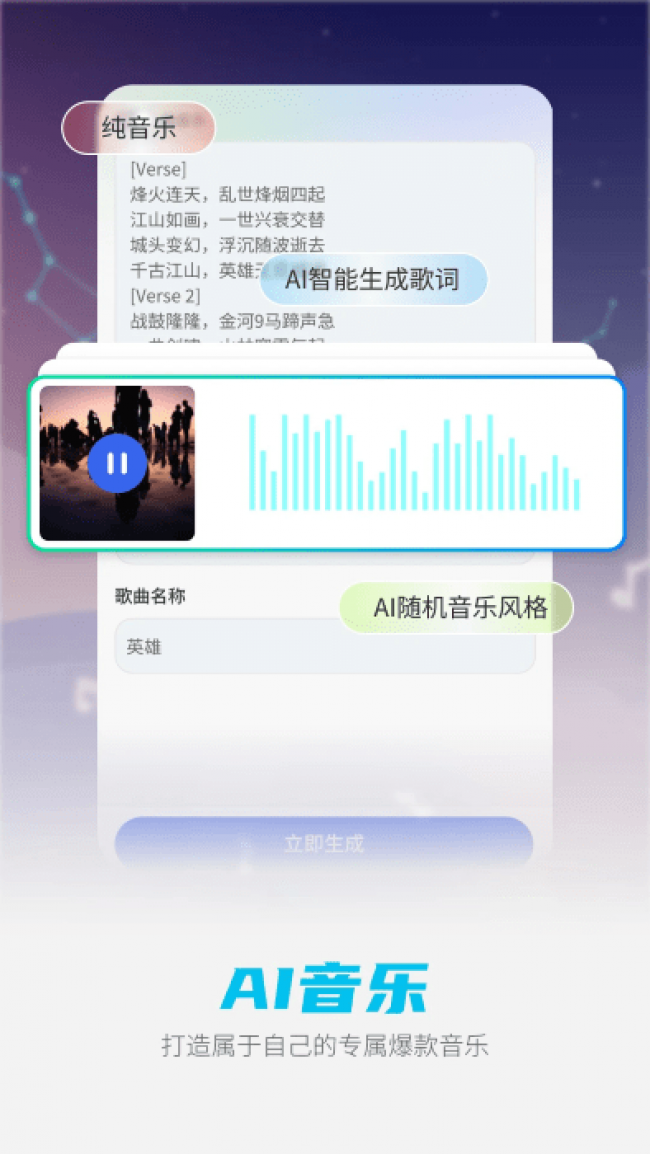 1、ai音乐,一键创作属于你自己的原创单曲。