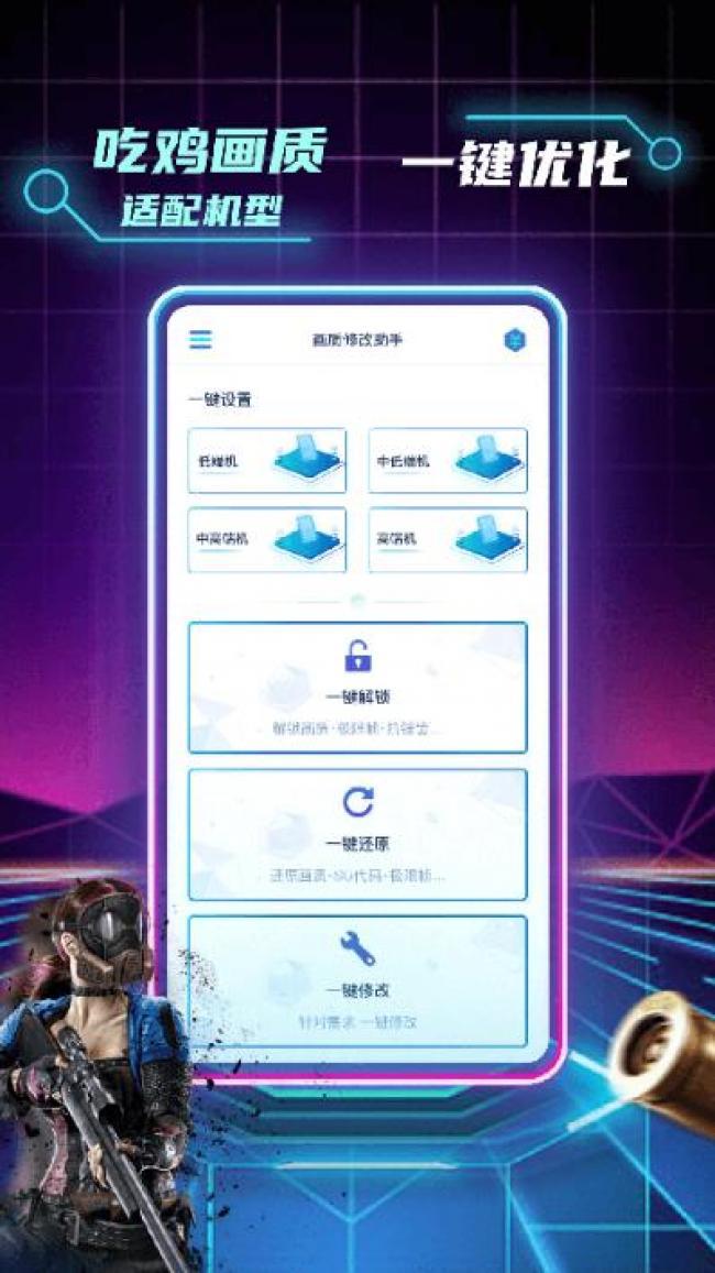 1、吃鸡画质修改,提升游戏帧率,提高画质,高清画质,画质助手,游戏画质助手,成为游戏高手。