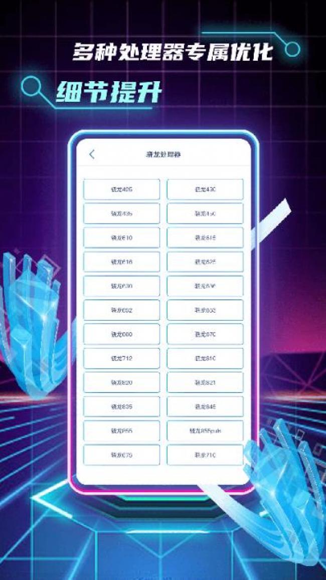 2、根据骁龙、麒麟、联发科等不同处理器,适配不同专属优化。还能特定优化钢枪、解锁高帧高画质。