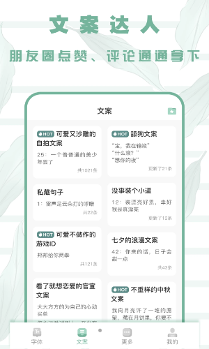 3、集成了各式字体、符号、优质文案的应用。可以帮助你在朋友圈。