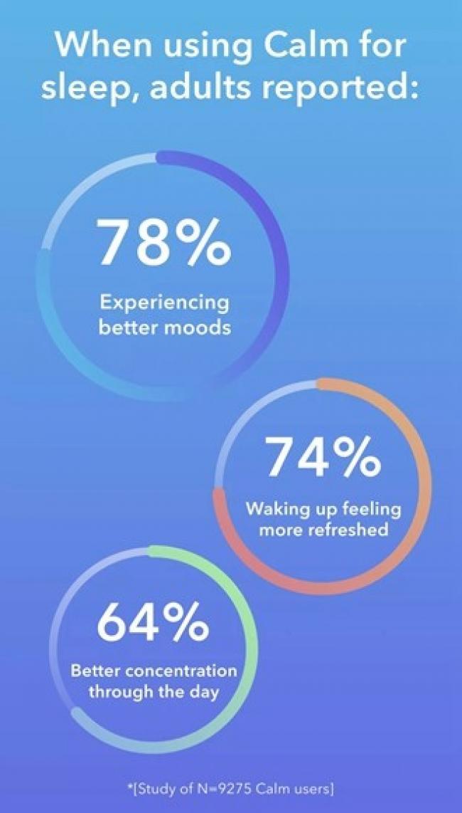 calm冥想软件全程记录睡眠中的梦话、鼾声与呼吸状态,提供详尽的睡眠分析报告;