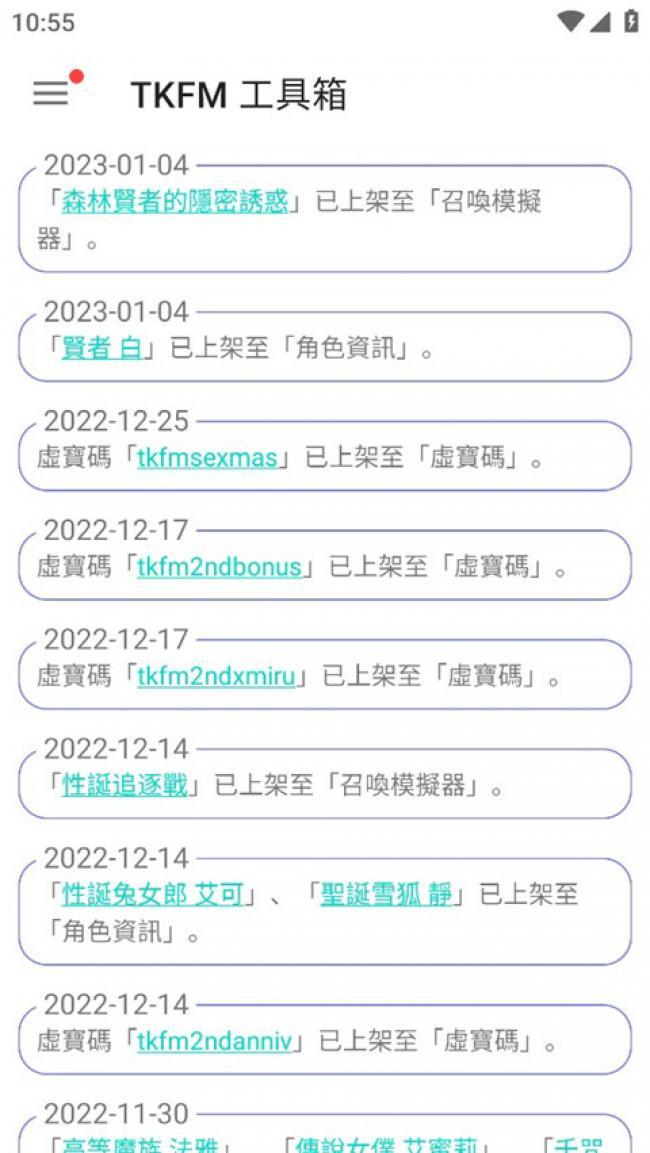 天下布魔tkfm工具箱下载是一款非常好用的游戏辅助工具,这款游戏辅助工具还为用户提供了各种邀请码、角色资讯和抽卡模拟器等,功能非常全面,可以满足不同用户的使用需求,还为用户提供了完整的游戏图鉴和道具数据等,方便各位游戏玩家查询最新的副本内容,用户还可以随时修改游戏的相关参数,让玩家可以获得更好的游戏体验,运行流畅不占用手机内存,为用户提供优质的使用体验,还能帮助玩家收集最新的虚拟资源兑换码,不用担心因为没关注信息而错过任何福利,功能非常全面,如果你也喜欢这款软件,软件站现有最新版本,那就快来下载吧。