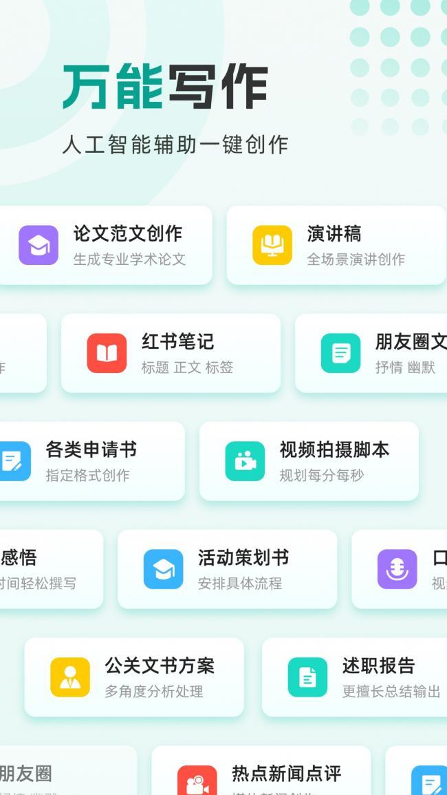 1、万能写作大师app下载基于大模型技术,支持一键生成文章、文案、公文、故事等内容,快速完成稿件。
