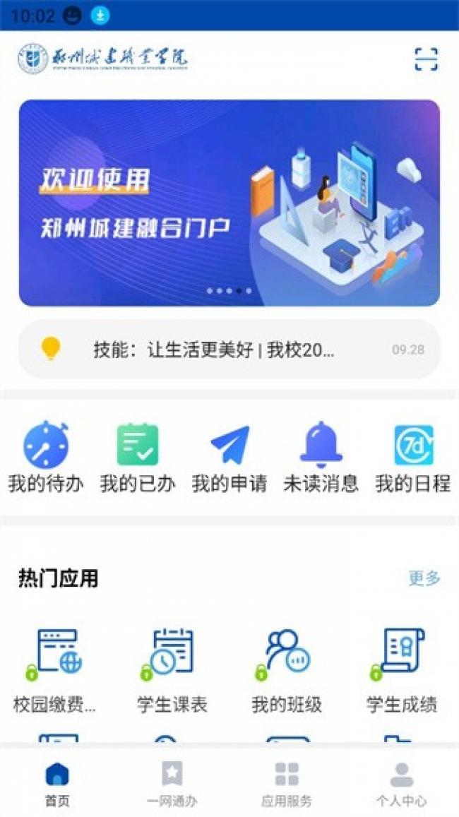 爱城建app下载是一款专业的智慧校园服务平台,专门为郑州城建职业学院的老师和学生提供校园服务,让广大的师生用户体验到最便捷的校园生活,用户可以轻松的通过它获取学校的各种资讯,在宿舍就可以了解到学校发送的各种大事,还可以在软件上直接进行充值,不需要排队就可以对校园卡进行充值,非常方便,还可以轻松获取各种课程安排和考试时间,无论是日常学习、生活服务还是校园活动等,在这里都可以最大程度的满足你的需求,让你体验到数字化的校园生活。喜欢的伙伴们快来下载试试吧。