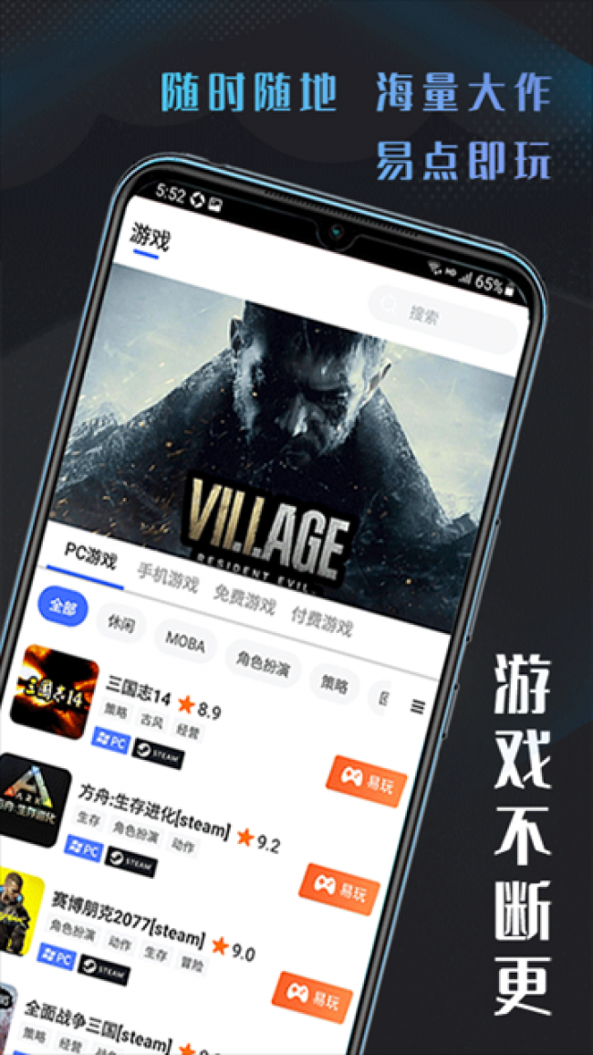 易点玩云游戏官方下载是一款非常好用的云游戏软件,它可以为用户提供海量的游戏资源,不需要下载安装,点击就可以立即体验,不论是热门网游还是3A大作都可以轻松体验,对用户的硬件没有过高要求,你可以轻松体验到优质的游戏,界面设计简洁干净,所有功能都一目了然,小白也能快速上市,能够轻松满足不同用户的使用需求,完全不用担心没有电脑,让你轻松体验到各种优质的端游,还可以支持连接外设,给你更好的操作体验,不论是鼠标键盘还是手柄都可以支持,功能非常全面深受用户喜爱,如果你也喜欢这款软件,软件站现有最新版本,那就快来下载吧。
