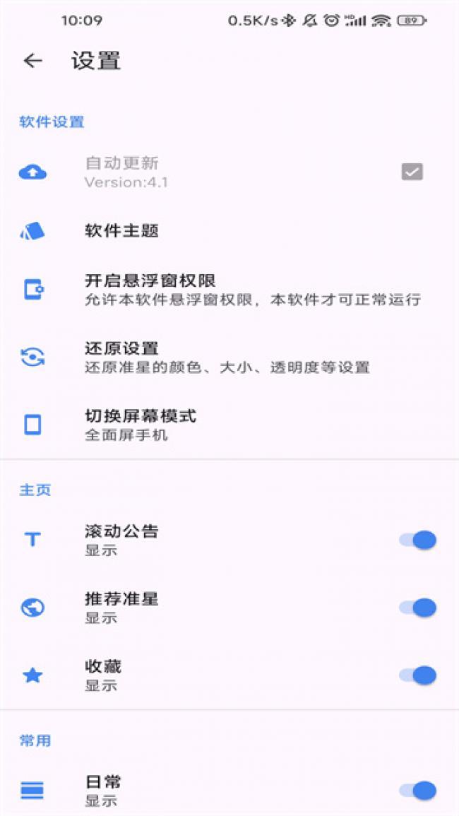 1、准星助手app快切系统悬窗(悬浮一个按钮、点击快速切换文本&图标准星)。