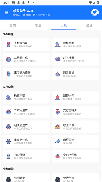 1、帧数助手随时使用任何功能,帮助修改你的游戏画质和比例,还可以生成捏脸代码。