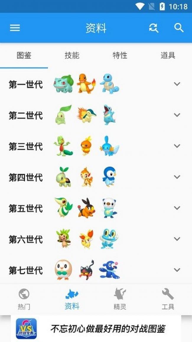 2、可查询从第一世代到第八世代的所有宝可梦精灵资料,包含了详细的精灵介绍、技能介绍以及各种道具查询。