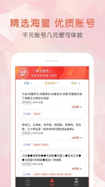2、专业的游戏账号租赁平台,让你尽享安全租号,众多游戏热爱者租客聚集地,安全交易。