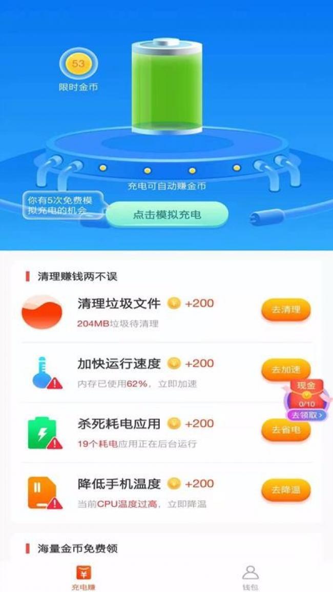 1、一个简单易用的手机赚钱软件,操作特别简单,给您的手机充电并收集电来获取金币;