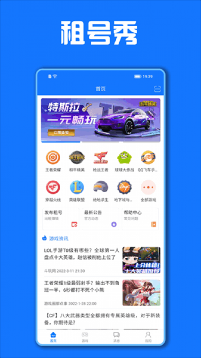 1、租号秀上号app人手必备,优质游戏账号,租号助手,汇聚全网,各类热门游戏,应有尽有。