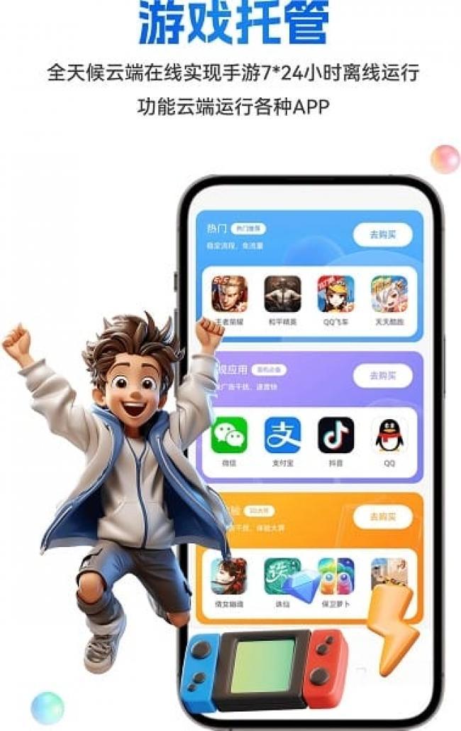 1、游戏全天候云端在线,实现7*24小时无忧运行,确保游戏进度不落后。