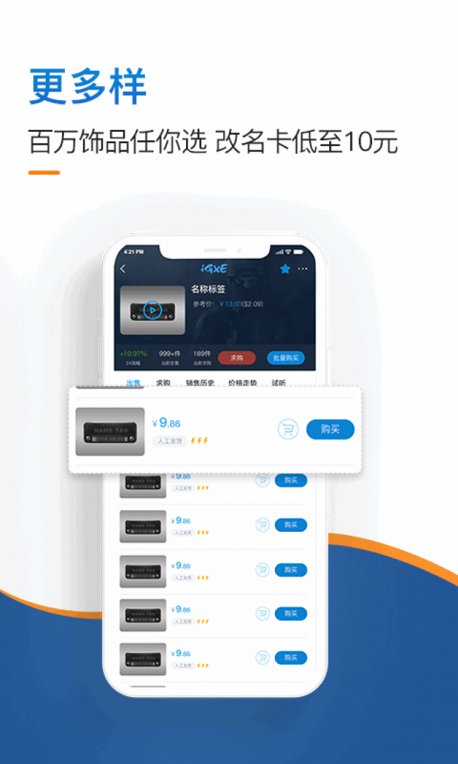 igxe交易平台下载是一款非常好用的游戏视频交易软件,还可以支持CSGO、PUBG、DATA2和绝地求生等,功能非常全面还可以为广大玩家提供安全、便捷和可靠的饰品交易,非常适合喜欢玩游戏的用户,让你可以随时在这里进行各种游戏皮肤和饰品交易,玩家可以随意挑选自己喜欢的商品进行购买,商家还可以在这里出售你的闲置皮肤商品,功能非常全面,能够满足不同用户的使用需求,还可以保障用户的财产安全,有效保障用户的物品安全,不论是买家还是买家都可以放心交易,如果你也喜欢这款软件,软件站现有最新版本,那就快来下载吧。