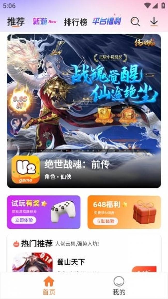 1、U2game游戏盒子的界面设计简洁明了,易于操作。