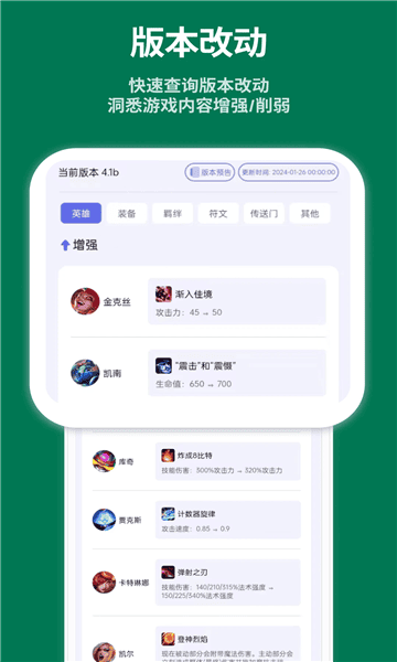 3、游戏版本频繁更新,我们致力于为您提供最快速、最全面的版本改动查询服务。