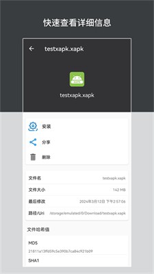 2、支持安装包大小、签名以及包名和更新时间等查看;