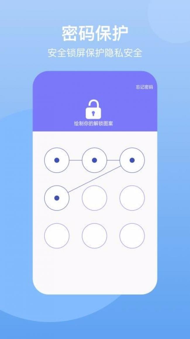 3、非常坚固的图案型密码保护方法,登录密码采用了图案解锁模式,加强了解锁难度。