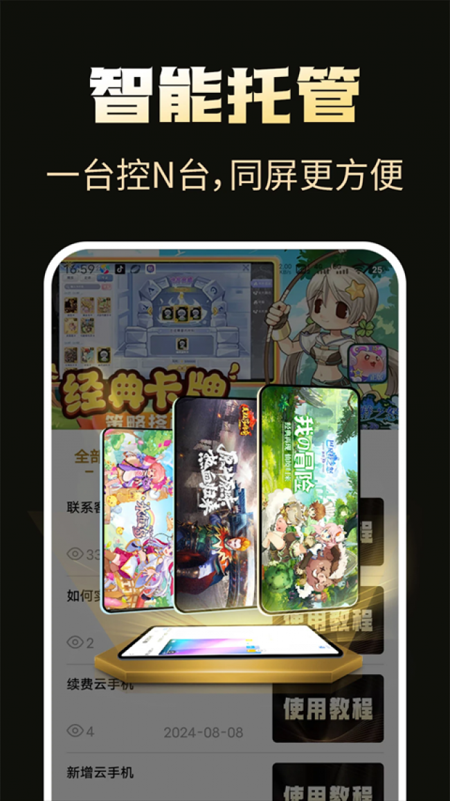 2、拥有托管功能,用户可以在一个手机当中同时操控多个云手机进行工作。