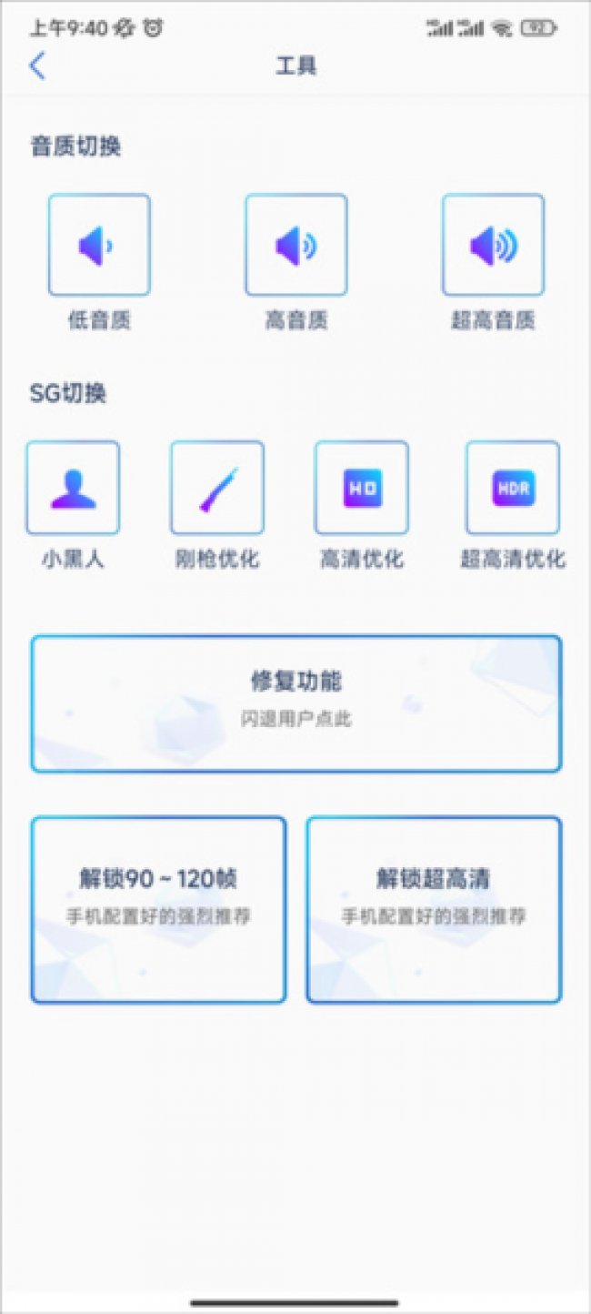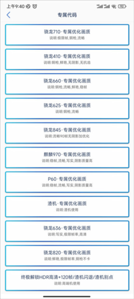 3、根据骁龙、麒麟、联发科等不同处理器,适配不同专属优化。还能特定优化钢枪、解锁高帧高画质。