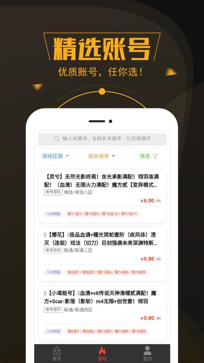 3、支持多款热门游戏账号租赁,玩家能够体验到不同游戏世界的精彩与乐趣。