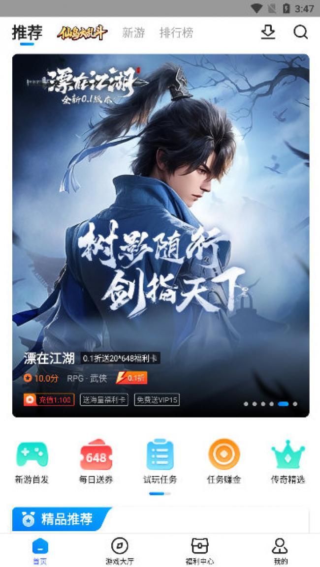 2、首页分为游戏推荐、分类导航、活动中心等板块,点击分类可查看不同类型游戏,活动中心可参与福利领取与互动任务。