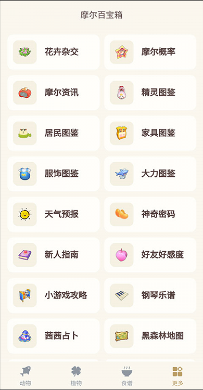 摩尔助手最新版下载是一款专为摩尔庄园打造的辅助软件,这里收录了游戏中的各类动物、植物、视频、家具、npc、服饰图鉴和它们的详细信息,功能非常全面能够满足不同用户的使用需求,用户只需要通过搜索就能快速找到自己需要的内容,为用户带来更好的游戏体验,界面设计简洁干净所有功能都有一目了然,操作简单方便为用户提供了优质的服务,还有各种游戏福利和礼包码,让你能够领取各种游戏礼包,帮你快速提升游戏实力,非常适合喜欢玩游戏对用户,深受用户喜爱,如果你也喜欢这款软件,软件站现有最新版本,那就快来下载吧。